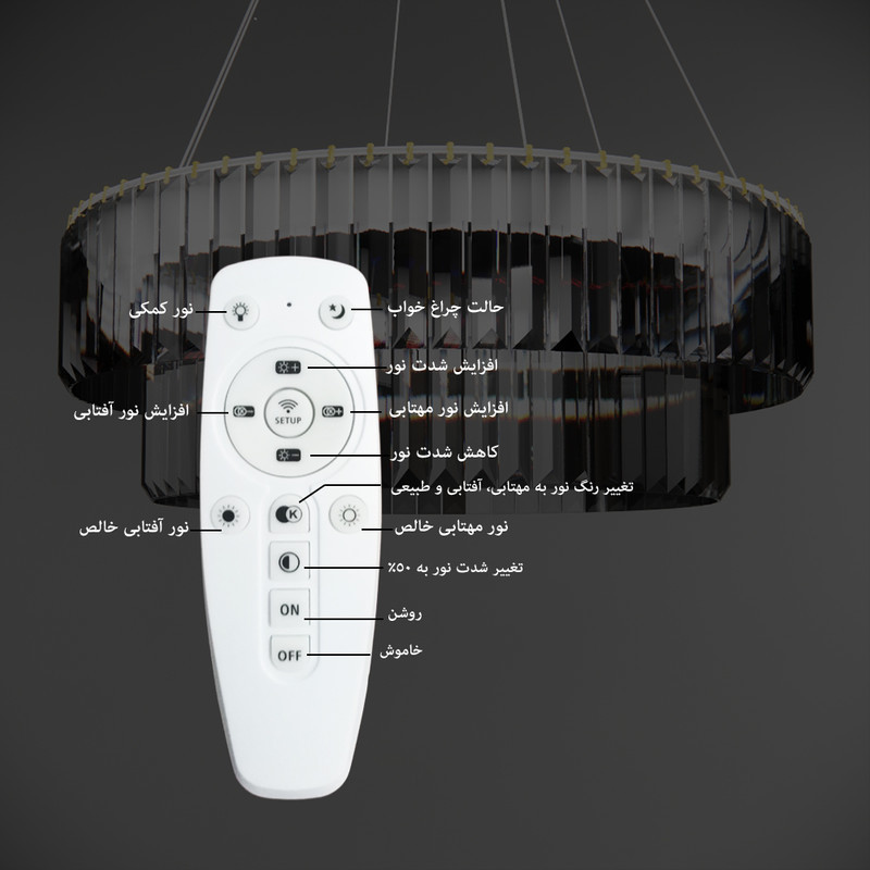 لوستر نورکیا مدل لاینر کاردی مخصوص بالای میز ناهار خوری، راهرو ها و سالن طراحی شده است. این لوستر دارای ست کامل شامل لوستر دیواری، لوستر دو حلقه ای کاردی و تک حلقه ای کاردی برای سالن، آشپزخانه و اتاق خواب است. با جستجو در دیجیکالا می توانید این مدل ها را پیدا کنید. در این لوستر می توانید علاوه بر ریموت کنترل، از طریق گوشی هوشمند اندروید و iOS نیز رنگ نور یا شدت نور را تغییر دهید. با توجه به تکنولوژی ال ای دی سه رنگ، این لوستر می تواند سالن را با رنگ های مهتابی ، آفتابی و نور طبیعی (مخلوط مهتابی و آفتابی) روشن کند. همچنین با خاموش و روشن کردن هم رنگ نور و هم شدت نور تغییر می کند. این لوستر در نور سفید 5000 لومن، نور آفتابی 5000 لومن و نور طبیعی 10000 لومن نور تولید می کند. نور این لوستر کاملا مناسب برای میز بالای ناهار خوری است همچنین می تواند اتاق خواب بزرگ و سالن را کاملا درخشان کند. ریموت کنترل این محصول حالت های مختلف نور را در اختیار شما قرار می دهد. حالت شب خواب یکی از این حالت هاست که با فشار یک دکمه این لوستر به کم نور ترین حالت می رود که در این حالت تنها 5 درصد از توان لوستر استفاده می شود. با بهره گیری از سیم های جمع شونده می توانید ارتفاع این لوستر را از 35 سانت تا حدود 100 سانت تغییر دهید. با خرید این این لوستر نیازی به لامپ ندارید. داخل حلقه های آن، مجموعا 108 وات ال ای دی با شاخص مصرف انرژی A++ نصب شده است. لامپ های ال ای دی بسیار بهینه تر از لامپهای کممصرف و رشتهای هستند. این لوستر با وجود اینکه 108 وات توان مصرفی دارد اما می تواند نوری به اندازه یک لامپ کم مصرف 240 وات تولید کند. قسمت بالای حلقه ها از الومینیوم ساخته شده است تا حرارت ال ای دی ها دفع شود. بخاطر همین سیستم خنک کاری، طول عمر مفید ال ای دی های این لوستر 25000 ساعت یا حدود 8 سال است. در این لوستر از کریستال های درجه یک وارداتی استفاده شده که دارای بهترین شفافیت است. کریستال های این لوستر در 4 رنگ قابل سفارش است. شفاف (بی رنگ) ،شامپاینی (بژ)، دودی (تیره) ، و یخی (سفید مات). دقت کنید که رنگ های کریستال روی بازدهی نور تاثیر زیادی دارد. کریستال های دودی، شامپاینی و یخی باعث کاهش نور می شوند اما کریستال شفاف نور را کاهش نمی دهد.