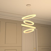 این لوستر علاوه بر داشتن کنترل فیزیکی، قابلیت اتصال و کنترل توسط گوشی هوشمند اندروید را دارد. این لوستر با فناوری ال ای دی سه رنگ می تواند محیط را به رنگ های سفید مهتابی ، زرد آفتابی و نور طبیعی (مخلوط مهتابی و آفتابی) روشن کند. براحتی با هر بار خاموش و روشن کردن رنگ نور تغییر می کند همچنین با خاموش و روشن کردن میتوان شدت نور را کم و زیاد کرد. به این صورت که نور سفید 8000 لومن، نور آفتابی 8000 لومن و نورطبیعی 16000 لومن نور تولید می کند و برای اتاق و سالن های بزرگ تا ابعاد 45 متری مناسب است. کنترل این لوستر دارای حالت های مختلفی از جمله حالت شب خواب است که با فشار یک دکمه نور به پایین ترین حد خود رفته که تنها 2 وات مصرف می کند. این لوستر نیازی به لامپ ندارد. داخل حلقه ی آن، ال ای دی 160 وات با شاخص مصرف انرژی A++ نصب شده است. لامپهای ال ای دی به مراتب از لامپهای کممصرف و رشتهای مصرف کمتری دارند و به همان میزان نور تولید می کنند این لوستر می تواند نوری به اندازه یک لامپ کم مصرف 400 وات تولید کند. بدلیل سیستم خنک کاری مناسب، ال ای دی های این لوستر 25000 ساعت عمر مفید دارند پره های این لوستر از نوعی پلاستیک مات با فرمولاسیون خاص ساخته شده است با این هدف که نور بصورت نرم و کاملا یکنواخت پخش شود. بر خلاف لامپ های ال ای دی که نور تیز و زننده دارند، نور این لوستر بسیار نرم است بطوریکه در حداکثر شدت نور می توانید به آن نگاه کنید بدون آنکه چشم را اذیت کند. اگر یک لامپ کوچک را برای روشنایی یک اتاق در نظر بگیریم بدلیل اینکه منبع نور کوچکی است سایه های زیاد و تیزی در کنار اجسام خواهیم داشت که این کنتراست شدید نور، به سرعت چشم ها را خسته می کند. در این لوستر بدلیل اینکه از تمام سطح حلقه نور یکنواخت تابیده می شود منبع نوری بزرگی ایجاد می شود که سایه های کم و بسیار نرم و نامحسوسی خواهیم داشت. با تکنولوژِی جدید آنتی فلیکر، پخش نور در این لوستر کاملا بدون فلیک یا بدون چشمک می باشد. این تکنولوژی مخصوص مطالعه و عکاسی می باشد. درهنگام مطالعه به هیچ وجه چشم را خسته نمی کند و در هنگام عکاسی در تصویر دوربین موج ایجاد نمی کند. ارتفاع این لوستر قابل تنظیم می باشد و همچنین می توانید آن را زاویه دار تنظیم کنید.