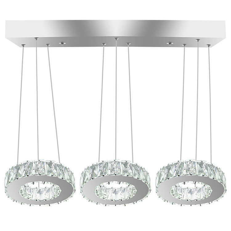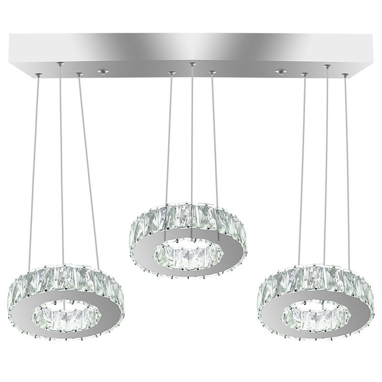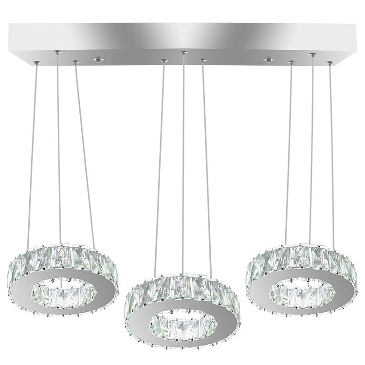 ارتفاع از سقف تا لوستر 70 سانت سایز حلقه ها 20 سانت قابلیت تنظیم ارتفاع جداگانه حلقه ها نور افتابی مهتابی و نچرال ریموت کنترل دیمر دار (قابلیت کم و زیاد کردن نور ) سوپر کریستال 3×5 استیل 0/6 ضد زنگ و ضد رطوبت