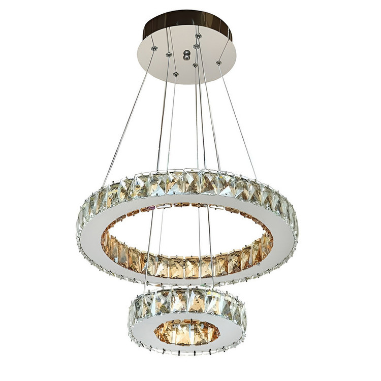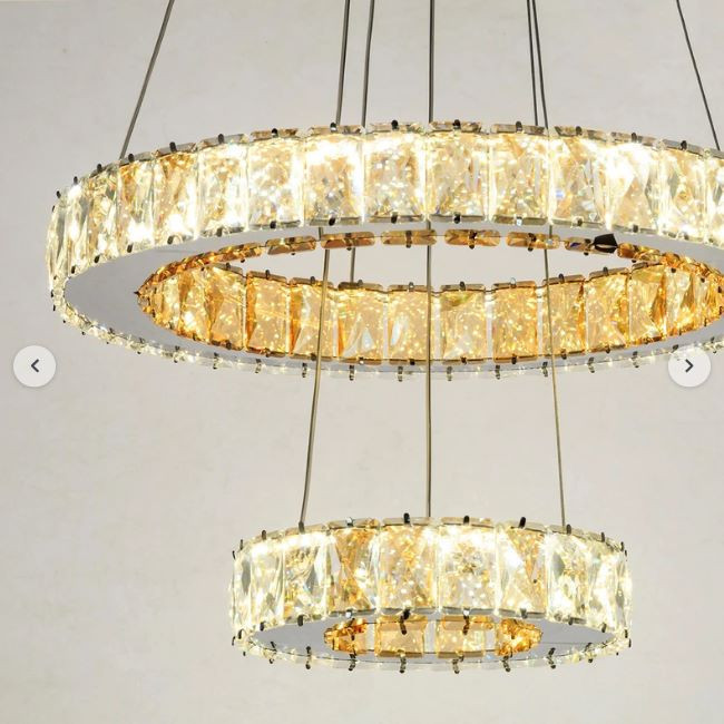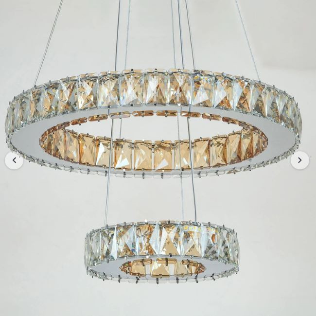 لوستر های کریستالی بر خلاف لوستر های حبابی پخش نور و درخشش بسیار خوبی دارند. این دسته از لوستر ها به دلیل وجود کریستال های فراوان نور را به خوبی منعکس می کنند. بدلیل طراحی خاص این سبک لوستر ها، امکان استفاده از آن ها در هر سبک چیدمان اعم از مدرن و کلاسیک وجود دارد. فقط کافی ست با کمی خلاقیت و سلیقه لوستر کریستالی مناسب با سبک منزل خود را انتخاب کنید و از درخشش و زیبایی خیره کننده آن لذت ببرید. لوستر دو حلقه کريستالي نقره اي و طلایی NH_KL23 از دو حلقه با قطر 40 و 20 سانتی متری تشکیل شده است. قسمت بیرون و داخل هر دو دایره از قطعات کریستالی بسیار با کیفیت پوشیده شده است. استفاده از کریستال های با کیفیت در درخشش و نوردهی محصولات کریستالی بسیار مهم می باشد. قسمت بالا ی دایره از جنس فلز است که و به رنگ کروم و طلایی آبکاری شده است. همین سطح آیینه ای نوردهی محصول را چندین برابر می کند. این محصول نور فضایی در حدود 15 متر مربع از سالن پذیرایی را برای شما تامین می کند. لوستر دو حلقه کريستالي نقره اي و طلاییNH_KL23را بدلیل وجود کریستال ها و جزییات زیاد و زرق و برقش می توان دردسته لوسترهای کلاسیک قرار داد. اما نصب این لوستر در فضاهای مدرنی که بیش از حد ساده طراحی شده اند می تواند کانون توجه باشد. وجود این لوستر خیره کننده و چشمگیر فضا را از بی روحی خارج کرده و به محیط انرژی و گرما می بخشد. نوردهی در لوستر دو حلقه کريستالي نقره اي و طلایی NH_KL23 توسط رشته لامپ های SMD انجام می شود. از مزایای استفاده از لامپ های SMD می توان به موارد زیر اشاره نمود: 1. طول عمر طولانی 2. مصرف برق کمتر 3. عدم تولید گرمای زیاد 4. روشنایی ملایم و یکنواخت تر 5. هزینه کمتر نگهداری از امکانات دیگر این محصول می توان به قابلیت تنظیم ارتفاع و وجود ریموت کنترل همراه محصول به منظور روشن و خاموش کردن لوستر و تنظیم شدت و ضعف نور اشاره نمود. پوشش استفاده شده برای سطوح فلزی این محصول، آبکاری می باشد. در خصوص تمیزکاری قسمت های آبکاری شده به منظور حفظ کیفیت و طول عمر بیشتر رنگ این محصول، از مواد شیمیایی به هیچ وجه استفاده ننمایید. استفاده از دستمال نخی نمدار برای تمیز کردن قسمت های فلزی توصیه می شود.