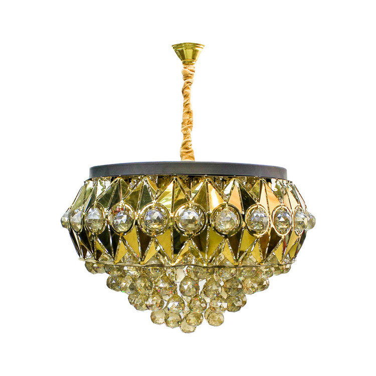 لوستر ملانی استیل طلایی 6 دهم میرور میباشد. کریستال خور هست.دارای 14 عدد جای لامپ هست.کریستال گوی شکل 40 دارد.بالای آن صفحه مشکی دارد.قطر آن 50 سانتی متر و عرض آن 50 سانتی متر و ارتفاع آ ن 60 سانتی متر میباشد