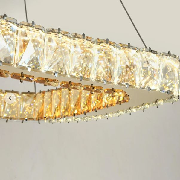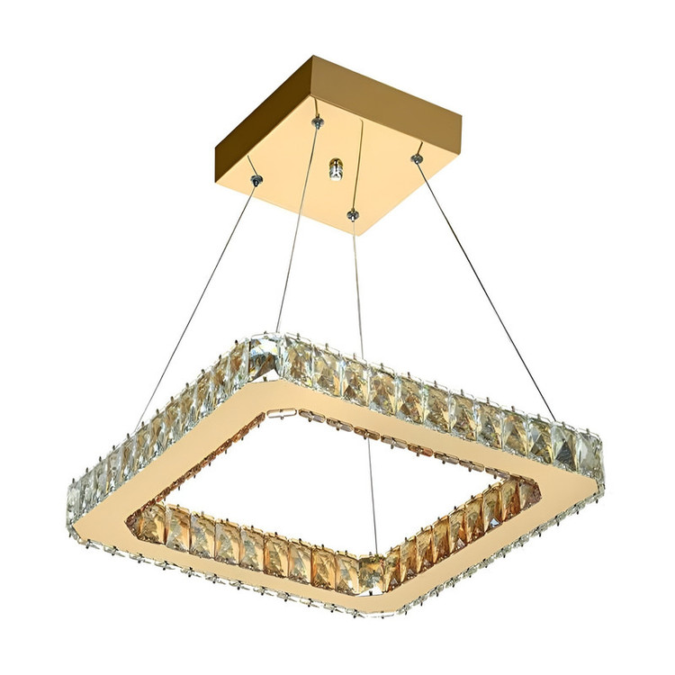 لوستر های کریستالی بر خلاف لوستر های حبابی پخش نور و درخشش بسیار خوبی دارند. این دسته از لوستر ها به دلیل وجود کریستال های فراوان نور را به خوبی منعکس می کنند. بدلیل طراحی خاص این سبک لوستر ها، امکان استفاده از آن ها در هر سبک چیدمان اعم از مدرن و کلاسیک وجود دارد. فقط کافی ست با کمی خلاقیت و سلیقه لوستر کریستالی مناسب با سبک منزل خود را انتخاب کنید و از درخشش و زیبایی خیره کننده آن لذت ببرید. طراحی لوستر تک حلقه کريستالي طلايي TE_49H به شکل مربعی با ابعاد 40 در 40 سانتی متر می باشد. قسمت بیرون و داخل مربع از قطعات کریستالی بسیار با کیفیت پوشیده شده است. استفاده از کریستال های با کیفیت در درخشش و نوردهی محصولات کریستالی بسیار مهم می باشد. قسمت بالای مربع از جنس فلز است که و به رنگ طلایی آبکاری شده است. همین سطح آیینه ای و درخشان قسمت فلزی، نوردهی محصول را چندین برابر می کند. این محصول نور فضایی در حدود 10 متر مربع از سالن پذیرایی را برای شما تامین می کند. لوستر تک حلقه کريستالي طلايي TE_49H را بدلیل وجود کریستال ها و جزییات زیاد و زرق و برقش می توان دردسته لوسترهای کلاسیک قرار داد. اما نصب این لوستر در فضاهای مدرنی که بیش از حد ساده طراحی شده اند می تواند کانون توجه باشد. وجود این لوستر خیره کننده و چشمگیر فضا را از بی روحی خارج کرده و به محیط انرژی و گرما می بخشد. نورپردازی لوستر تک حلقه کريستالي طلايي TE_49H توسط رشته لامپ های SMD انجام می شود. از مزایای استفاده از لامپ های SMD می توان به موارد زیر اشاره نمود: 1. طول عمر طولانی 2. مصرف برق کمتر 3. عدم تولید گرمای زیاد 4. روشنایی ملایم و یکنواخت تر 5. هزینه کمتر نگهداری از امکانات دیگر این محصول می توان به قابلیت تنظیم ارتفاع و وجود ریموت کنترل همراه محصول به منظور روشن و خاموش کردن لوستر و تنظیم شدت و ضعف نور اشاره نمود. پوشش استفاده شده برای سطوح فلزی این محصول، آبکاری می باشد. در خصوص تمیزکاری قسمت های آبکاری شده به منظور حفظ کیفیت و طول عمر بیشتر رنگ این محصول، از مواد شیمیایی به هیچ وجه استفاده ننمایید.