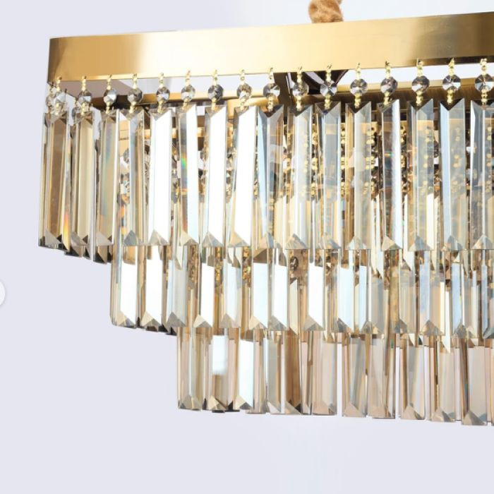 یکی از دوست داشتی ترین تجهیزات نورپردازی داخلی لوسترها هستند که اگر به درستی انتخاب شوند می توانند به تنهایی سهم زیادی در تحول دکوراسیون خانه ها داشته باشند.لوستر لاینر 9 شعله زادمهر مدرن کد r432_u نسبت به تعداد شعله های بکار رفته، نوردهی مناسبی دارد. جنس این لوستر لاینر زیبا از فلز آلومینیوم می باشد .مدل r432_u با کریستال های کاردی شامپاینی 12CM آذین شده و به درخشش هرچه بیشتر این لوستر لاینر کمک و باعث پخش نور بیشتر میشود . در میان این کریستالهای زیبا سرپیچ های شمعی یا E14 قرار دارد . این لوستر لاینر با ارتفاعی برابر 90 سانتیمتر ،به کاربراین اجازه را می دهد که با کم کردن زنجیرهای آن، این میزان را بسته به سلیقه خود کاهش دهد. این محصول با نام r432_u شناخته میشود. لوستر لاینر در عین زیبایی از کیفیت ساخت بالایی برخوردار است.از لوستر فوق میتوان در اتاق پذیرایی، آشپزخانه ، بالای میز های غذاخوری، راهروها ، حتی جلوی ساختمان ها ولابی های لوکس استفاده کرد. امروزه با توجه به استفاده های زیاد از این لوستر در طراحی های دکوراسیون داخلی ،این سبک از لوستر برای همیشه جایگاه خد را در بازاردکوراتیو حفظ خواهد کرد.با توجه به داشتن قابلیت تعویض لامپ ها و استفاده از لامپ های LED لازم به ذکر است که لامپهای ال ای دی به مراتب از لامپهای کممصرف و رشتهای مصرف کمتری دارند و به همان میزان نور تولید می کنند . برای محافظت از آسیب های احتمالی در زمان حمل و نقل، قطعات کریستالی در جعبه چیده شده است و بعد از نصب حلقه های ال ای دی، نصب می شوند. کریستال های به کار رفته در ساخت این نوع لوستر با توجه به جنس و کیفیت مواد آن نوردهی و درخشش متفاوتی ایجاد می کنند. از موادی همچون سرب، شیشه و پلاستیک برای ساخت کریستال ها استفاده می شود، هر چه مقدار سرب کریستال بیشتر باشد، درخشندگی بالاتری دارد.