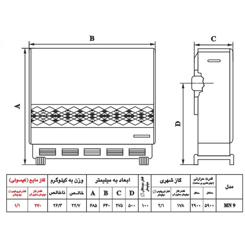 بخاری گازی نیک کالا مدل مریم MN9-A