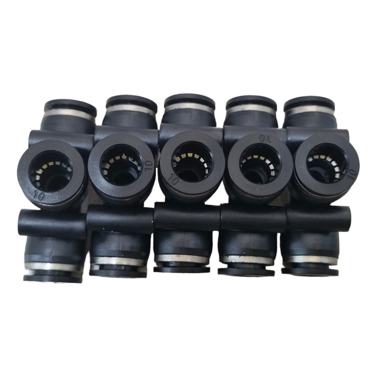 رابط اتصال پنوماتیک 10 ، به صورت سه راهی بوده و طرف های شلنگ خور آن 10 میلیمتر است. اتصال سه راهی فیتینگی است و برای آب بند شدن آن نیاز به نوار تفلون نیست.