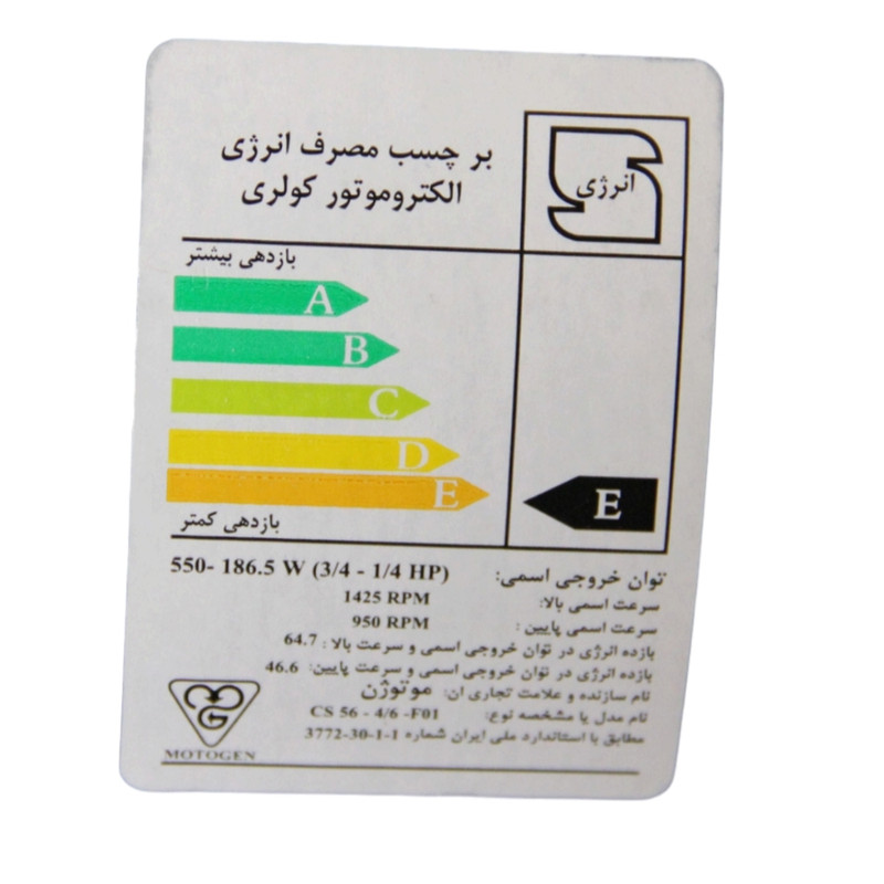 تولید الکتروموتور های کولری از سال 1355 تحت لیسانس شرکت وستینگهاوس در موتوژن شروع شده است.این الکترموتور ها با گشتاور راه اندازی بالا مخصوص کولر آبی با کاربرد تسمه ای دو دور بوده است. فریم الکتروموتور های کولری موتوژن سایز 56 بوده و تماما فولادی می باشد. جهت جلوگیری از خوردگی در محیط شدیدا رطوبتی داخل کولر با لایه ای بی رنگ از رزین پلی استر پوشش داده شده است ( جهت جلوگیری از هرگونه شوک الکتریکی و برق گرفتگی احتمالی از طریق بدنه الکتروموتور، قبل از اتصال الکتروموتور به شبکه برق، حتما سیم ارت به محل مربوطه وصل گردد). شفت: شفت الکتروموتور های کولری با یک سر خروجی تولید می گردند. ابعاد نهایی شفت ها با تلرانس بسیار دقیق با دستگاه های تمام اتوماتیک تولید شده و با لایه سیاه رنگ بسیار مقاوم در مقابل رطوبت پوشش داده می شوند. روتور: روتور ها از نوع قفس سنجابی و با آلومینیوم به روش خالص دایکاست شده و توسط ماشین آلات خودکار به طور دقیق ماشینکاری می گردند، کلید گریز از مرکز مخصوص، روی شفت و داخل الکتروموتور تعبیه شده است. براکت ها: براکت های الکتروموتور های کولری از آلیاژ آلومینیوم به روش ریخته گری دایکاست تولید شده و سوئیچ مخصوص ( ترمینال) روی براکت عقب الکتروموتور سوار می گردد. محل نصب سیم ارت نیز در روی براکت عقب و با یک علامت مخصوص مشخص شده است. خنک کاری: مطابق استاندارد NEMA-MG1 Part6 شیوه خنک کاری با پره های روتور می باشد. با چرخش روتور، هوا از کانال براکت های الکتروموتور به داخل مکیده شده و از سوراخ های فریم به بیرون هدایت می گردد. روغنکاری: الکتروموتور های کولری موتوژن به گونه ای طراحی گردیده اند که احتیاجی به روغنکاری مجدد نداشته و روانکار از انباره مخصوص در داخل براکت ها به طور خودکار ما بین شفت و یاتاقان ها جریان می یابد. درجه حفاظت : مطابق با استانداردNEMA-MG1 Part5 و معادل آن LEC 34-5 درجه حفاظت این الکتروموتور ها IP22 می باشد. این بدان معناست که این الکتروموتور ها در مقابل اجسام صلب با قطر بیش از 12mm و چکه های قطرات آب از بالای الکتروموتور ماکزیمم با 15 درجه زاویه از حالت عمودی حفاظت شده اند.