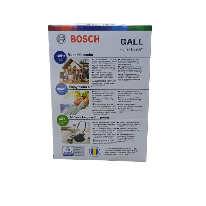 پاکت تیپ G با بسیاری از مدلهای جاروبرقی بوش و زیمنس سازگار بوده و انتخابی حرفهای برای افرادیست که به نظافت عمیقتر و سلامت هوای خانه اهمیت میدهند.