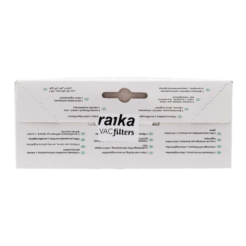 کیسه جاروبرقی یکبارمصرف رایکا با 5 لایه هپا در هر طرف تهیه شده که بااستفاده از فناوری اولتراسونیک به یکدیگر متصل شدهاند. بافت منسجم این کیسه و عدم وجود شکاف در محل اتصال از ورود ذرات به موتور و درنهایت هوای داخلی اتاق ممانعت کرده و موجب افزایش عمر دستگاه، مصرف کمتر انرژی و بهبود قدرت مکش میشود. این محصول مناسب جاروبرقیهای بوش تایپ G است و در بستهبندیهای 5 عددی مقوایی ارائه میشود.